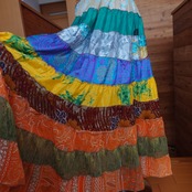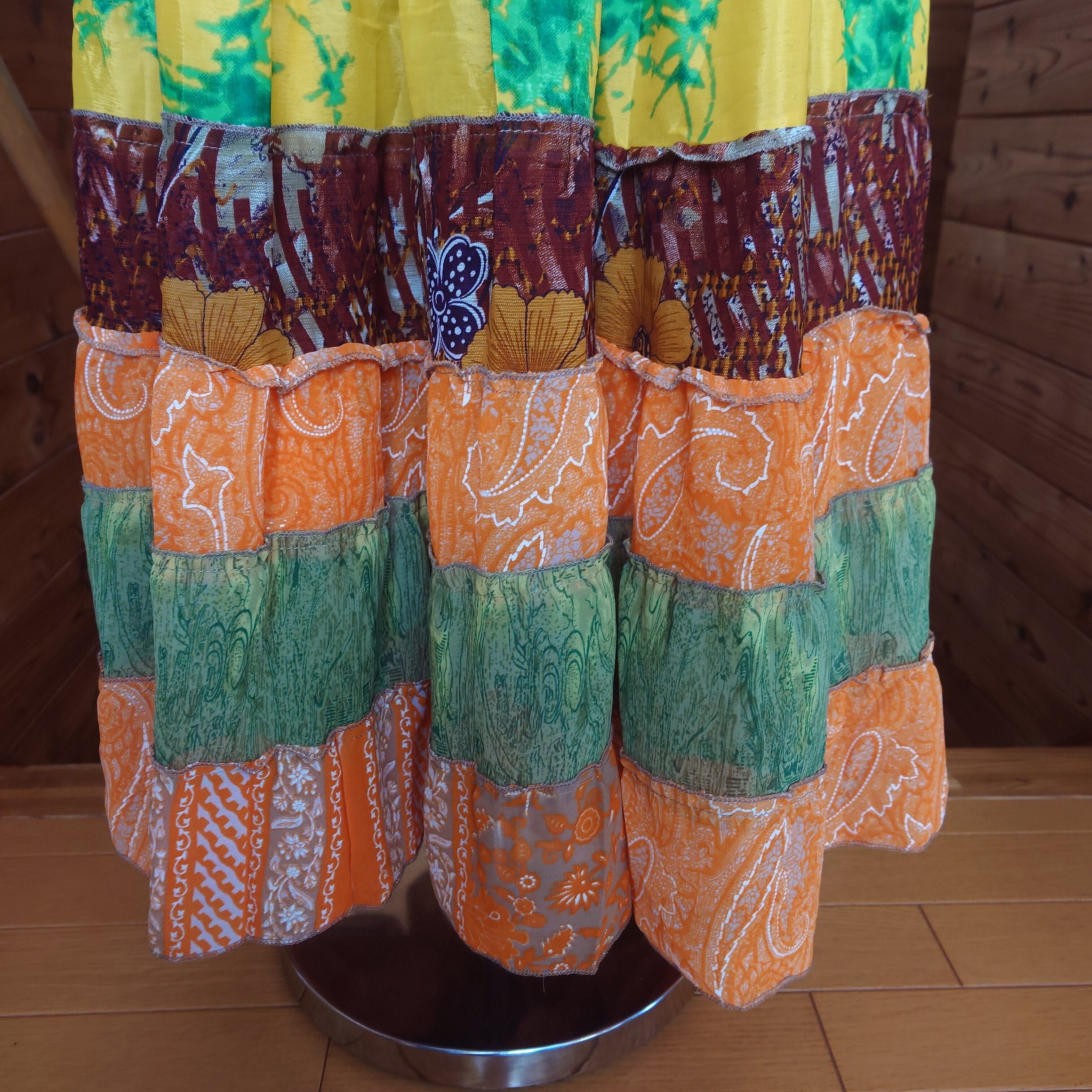 ヴィンテージサリー アップサイクルスカート オレンジ×ブルー